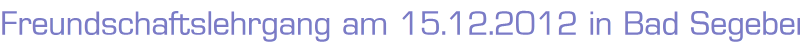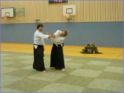 Am 15. Dezember 2012 fanden sich 33 Aikidokas aus Schleswig-Holstein und Hamburg zum 4. Freundschaftslehrgang des AVSE ein, um miteinander zu trainieren. Der Nachmittag wurde in zwei Einheiten aufgeteilt. Als Lehrer für den ersten Abschnitt konnte Dr. Björn Rahlf von der Aikido-Union Schleswig-Holstein gewonnen werden. Vorab des sehr interessanten und lehrreichen Trainings bedankte Björn sich beim Gastgeber Hans Carstens für die Einladung. Bei seinen einleitenden Worten betonte Björn, dass das Aikido auf der Matte stattfindet. Trotz der verschiedensten Verbände gibt es nur geringe Unterschiede. Es soll Selbstverteidigung praktiziert werden. Nach dem Aufwärmen begann Björn mit so genannten - einfachen – Techniken. Er zeigte dabei Eingänge welche nicht so häufig geübt werden. Dabei achtete er auf die Gleichgewichtsbrechung von Uke und der Distanz von Nage bei der Ausführung. Nach einigen Handtechniken folgten Techniken mit dem Stab. Zunächst übte jeder für sich zur Gewöhnung, um anschließend mit dem Partner zu agieren. So schloss Björn mit diesen Techniken den ersten Teil des Nachmittages ab. Die nächste Trainingseinheit oblag dem Lehrgangsleiter Hans Carstens vom AVSE. Hans knüpfte, nach einer kurzen Pause, an das gezeigte an und zeigte Bewegungsformen, welche vorgeschaltet, zu verschiedenen Technikausführungen umgesetzt werden konnten. Auch hier wurde der Schwerpunkt auf die Zentrumsarbeit gelegt. Zum Ende des Lehrgangs dankte Hans allen für das fleißige Training und Björn mit einem kleinen Präsent. Mit den besten Wünschen zu einem besinnlichen Weihnachtsfest und einem guten Rutsch ins neue Jahr wurden alle Lehrgangsteilnehmer verabschiedet.