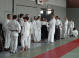 Schönstes Wochenendwetter und Aikidoka aus ganz Deutschland trafen sich im hohen Norden in Schleswig zum Bundeslehrgang. Referent war Gerhard Mai, 5. Dan Aikido und Vizepräsident der Aikido-Union Deutschland. Beginnend mit der Erwärmung und vielen Übungen (mit und ohne Partner) zur Dehnung und zum Rollen stieg Gerhard sofort in das vorgegebene Programm ein. Formen zur Abwehr bewaffneter Angreifer war angesagt. Zunächst zeigte er uns einige Vorübungen mit dem Stab, dann folgten einige weiterführende Techniken welche jeder von uns alleine zu absolvieren hatte. Anschließend zeigte er uns eine Stababwehr nach einem Angriff mit dem Stab. Und so sollte es weitergehen. Vorübung mit dem Partner, Übung mit dem Stab und Technik mit dem Partner. Oft musste Gerhard unterstützen und Hilfen geben, und mit seiner humorvollen Art gab es auch immer ein Lächeln dazu. Nach einer kleinen Pause in der man sich stärken und seinen Flüssigkeitshaushalt ergänzen konnte ging es zügig weiter. Begonnen wurde mit einer Partnerübung für die Rolle rückwärts. Dem folgte dann die Übung mit dem Stab - welcher nur einhändig geführt wurde. Dann kam eine Technik, für viele sehr bekannt, der Shiho-Nage. Anders als in der Go-Kyu nun aus dem Angriff Shomen-tsuki. Mit Partner wurde diese Technik geübt und anschließend mit Stab erweitert. Anschließend erfolgte der Irimi-Nage mit und ohne Waffenangriff. Auch die Messerabwehr war ein Bestandteil des Nachmittages. Gerhard zeigte einige Techniken mit Stab, ein- und zweihändig führend, zur Abwehr von Messerangriffen. Hier wurde einmal mehr auf die Gefährlichkeit dieser Waffe hingewiesen. Mit diesen abschließenden Techniken beendete Gerhard den ersten Tag des Lehrgangs. Am Sonntag folgte nach Einführung, Lehrgangsfoto und Gymnastik die Arbeit mit dem Bokken. Beginnend mit Vorübungen wie Haltung, Schlagrichtungen und der dazugehörigen Bewegungsschulung erfolgten die Partnerübungen. Hier zeigte es sich wieder einmal, dass jede Waffe ihre Eigenheiten hat und es eine lange Übungszeit bedarf diese kontrolliert zu führen. Nach den Partnerübungen zeigte unser Referent, zunächst ohne Bokken, Shiho-Nage aus Katate-ryote-tori. Zu Anfang gut umsetzbar, aber mit Waffe doch sehr schwierig. Es folgte dann noch Irimi-Nage und Kokyu-Nage ohne und später mit Bokken. Dann wieder der Schwertwurf mit Waffe. Gerhard beendete den Lehrgangstag und somit den Bundeslehrgang mit einer Technik mit Bokken bei der der Angreifer zu Boden gebracht und entwaffnet wurde. Viel zu schnell verging die Zeit des Übens. Wir haben viel mitgenommen und werden es in unseren Vereinen weiter geben. Vielen Dank. Nochmals „Danke“ an unseren Referenten, der mit seinen Getreuen den weiten Weg in den Norden nicht gescheut hat. Mit seiner netten humorvollen Art fand er immer den richtigen Weg und stand allen mit Rat und Tat zur Seite. Vielen Dank auch an den ausrichtenden Verein für die gute Aufnahme und Bewirtung.