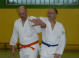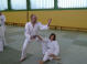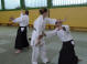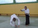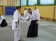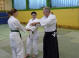 Am diesem schönen Samstagnachmittag fand das Training unter Dietmar Schulz statt. Das Thema lautete „Nage-Waza zum ersten Dan Aikido“. Nach der Gymnastik und den allgemeinen Aufwärmübungen zeigte Dietmar einige Übungen zum Einrollen. Angefangen mit der Fass Art Ushiro-ryote-tori rollten wir rückwärts und im weiteren Verlauf der Bewegungen auch vorwärts, bis hin zum ungleichseitigen Rollen. Dann folgten auch schon die ersten Techniken. Angefangen mit dem Tenchi-Nage (Himmel- und Erdewurf) aus dem Angriff Katate-ryote-tori (Fassen eines Handgelenkes mit beiden Händen) ging es über den Sumi-otoshi (Eckenkippe) und dem Kokyo-Nage (Atemkraftwurf) zu den Bodentechniken und hier zum Ude-nobashi (5. Stufe, Armschlüssel). Zum einen als Bestandteil der Go-Kyu und zum anderen als Teil der Kata. Dietmar machte uns allen an vielen Beispielen deutlich, wie all diese Techniken umzusetzen sind. Zentrumsarbeit und kleine runde Bewegungen, sowie das Aufnehmen und Abgeben und die Körperspannung waren der Schlüssel des Erfolgs. So versuchte er uns dahingehend zu sensibilisieren diese Dinge konzentriert und zusammen mit dem Zentrum umzusetzen. Den Abschluss dieses Lehrgangs bildete der Tenchi-Nage aus dem Angriff Ryote-tori in der Form Irimi. Hier konnte der Zusammenhang der Tegatana zum Zentrum deutlich gemacht werden. Nichts desto trotz erfordern diese Techniken viele Übungsstunden und Aha-Erlebnisse, um die so erworbenen Erkenntnisse zu vertiefen.